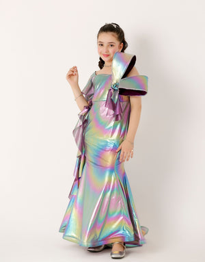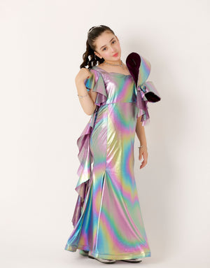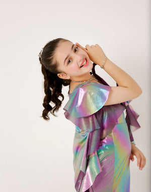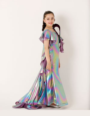 The Premium Fish Maxi Dress with flowered Shoulder line A premium & Trendiest Party wear for you princes. ZileNoor Collection's Premium western Dress for an unforgettable celebrations to Enhance the Beauty of your kid