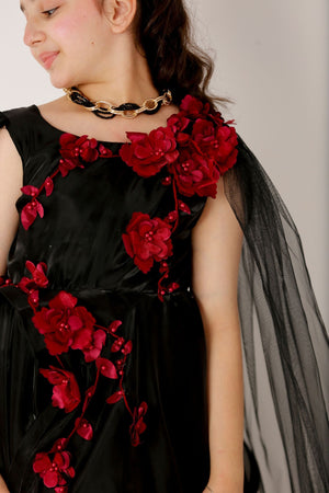 Maxi Dress A must have Party wear for you princes. Embellished with the hand crafted Flowers. Dress your kids for an unforgettable celebrations