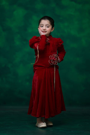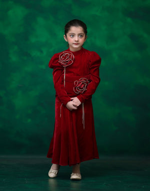 The velvet shirt skirt dress, embellished with handmade flowers and tassels, is a premium and trendy choice for your little princess. Perfect outfit for an unforgettable celebration